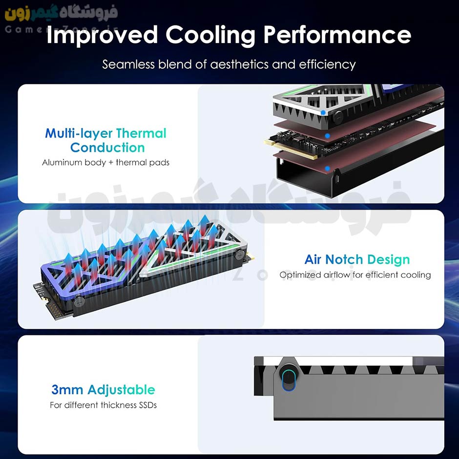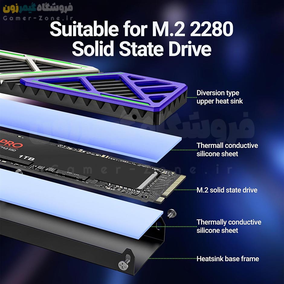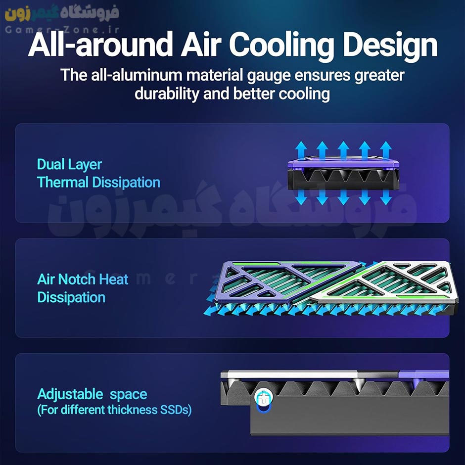 هیتسینک و خنک کننده حافظه SSD اینترنال مناسب کامپیوتر و PS5 مدل JEYI Dazzcold-006 M.2 SSD NVME Heatsink Cooler :