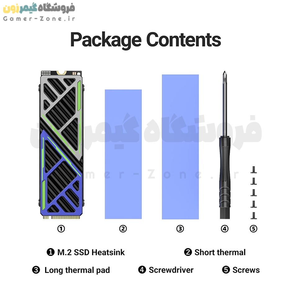 Equipped with soft thermal pads to fill the gap of the heatsink and SSD chips to improve thermal conductivity. Adjustable screw fixing holes on the base frame to achieve the better contact to enhance cooling performance