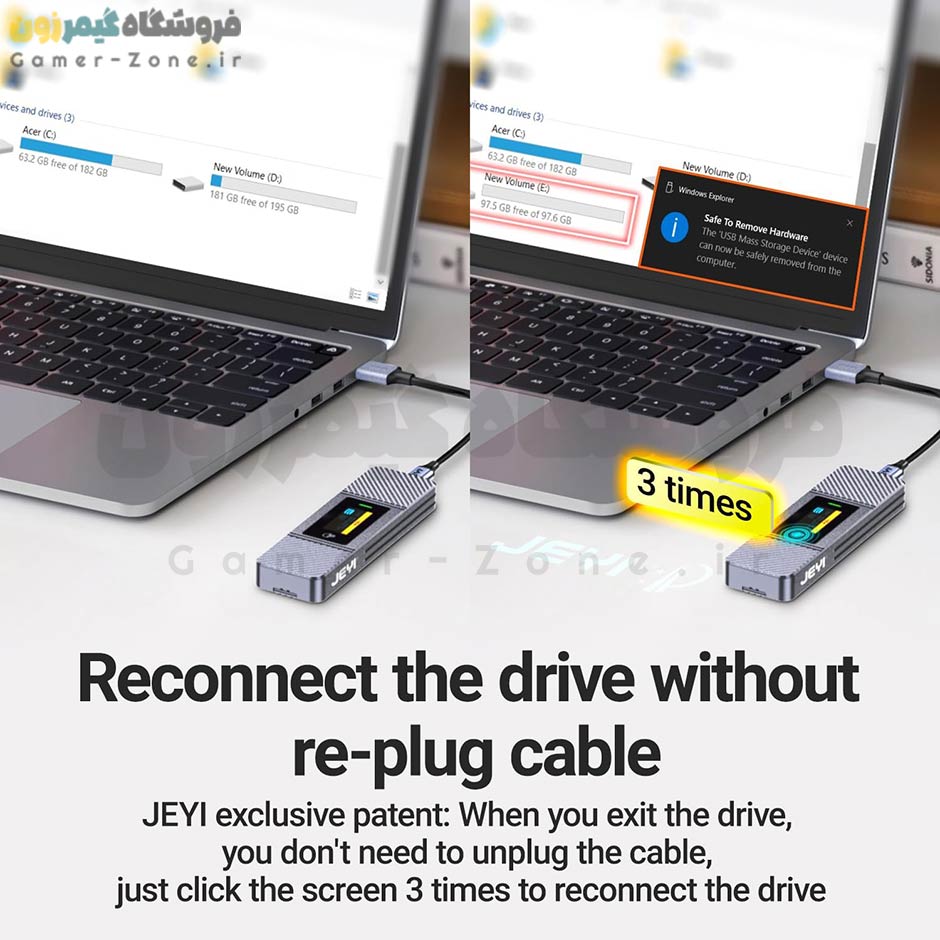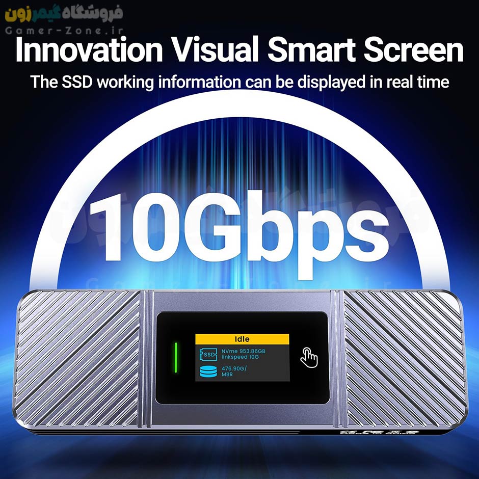 باکس هارد M.2 SSD تمام آلومینیومی دارای نمایشگر هوشمند مدل JEYI Zebra-i9X Visual Smart M.2 NVMe NGFF SSD Enclosure :