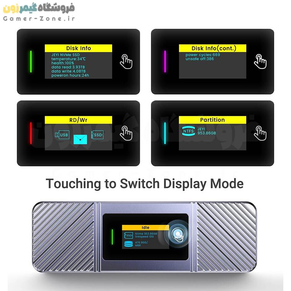 باکس هارد M.2 SSD تمام آلومینیومی دارای نمایشگر هوشمند مدل JEYI Zebra-i9X Visual Smart M.2 NVMe NGFF SSD Enclosure