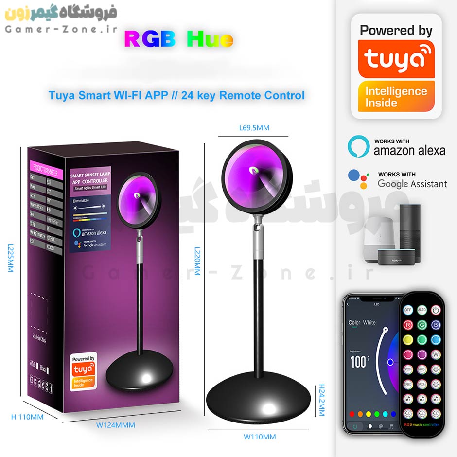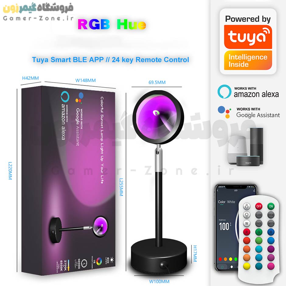 لامپ پروژکتوری رنگین کمانی هوشمند وای-فای/بلوتوث مدل RGB Rainbow Projection WiFi/Bluetooth (Tuya APP) LED Lamp + Remote Controller