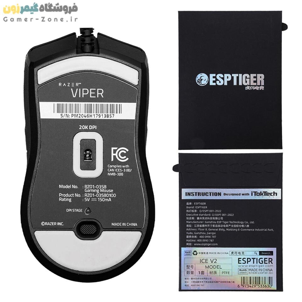 اسکیت موس ریزر وایپر مدل Esports Tiger ICE V2 Mouse Feet/Skates for Razer Viper / Viper 8KHZ :