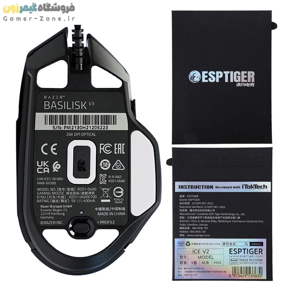 اسکیت موس ریزر باسیلیسک مدل Esports Tiger ICE V2 Mouse Feet/Skates for Razer Basilisk V3