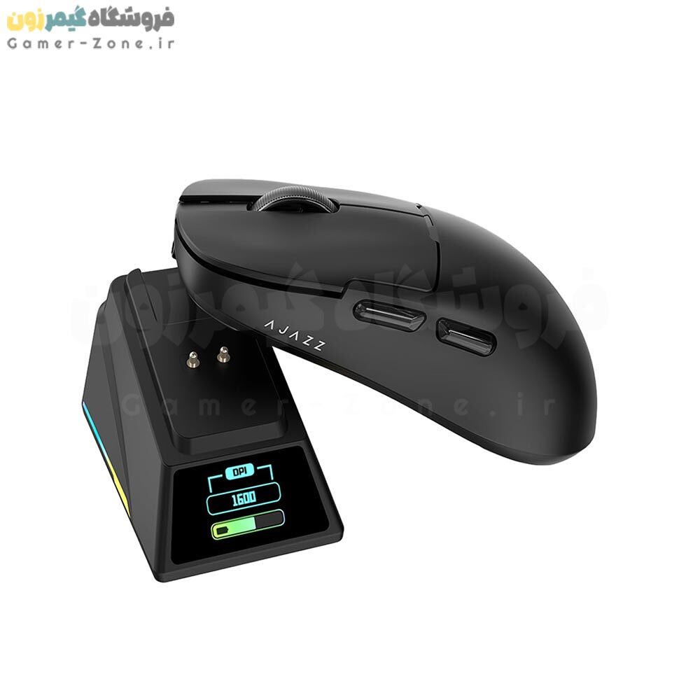 موس گیمینگ بی سیم حرفه ای ایجز به همراه داک شارژ مدل Ajazz AJ159 APEX 8K Wireless Gaming Mouse + Charging Dock