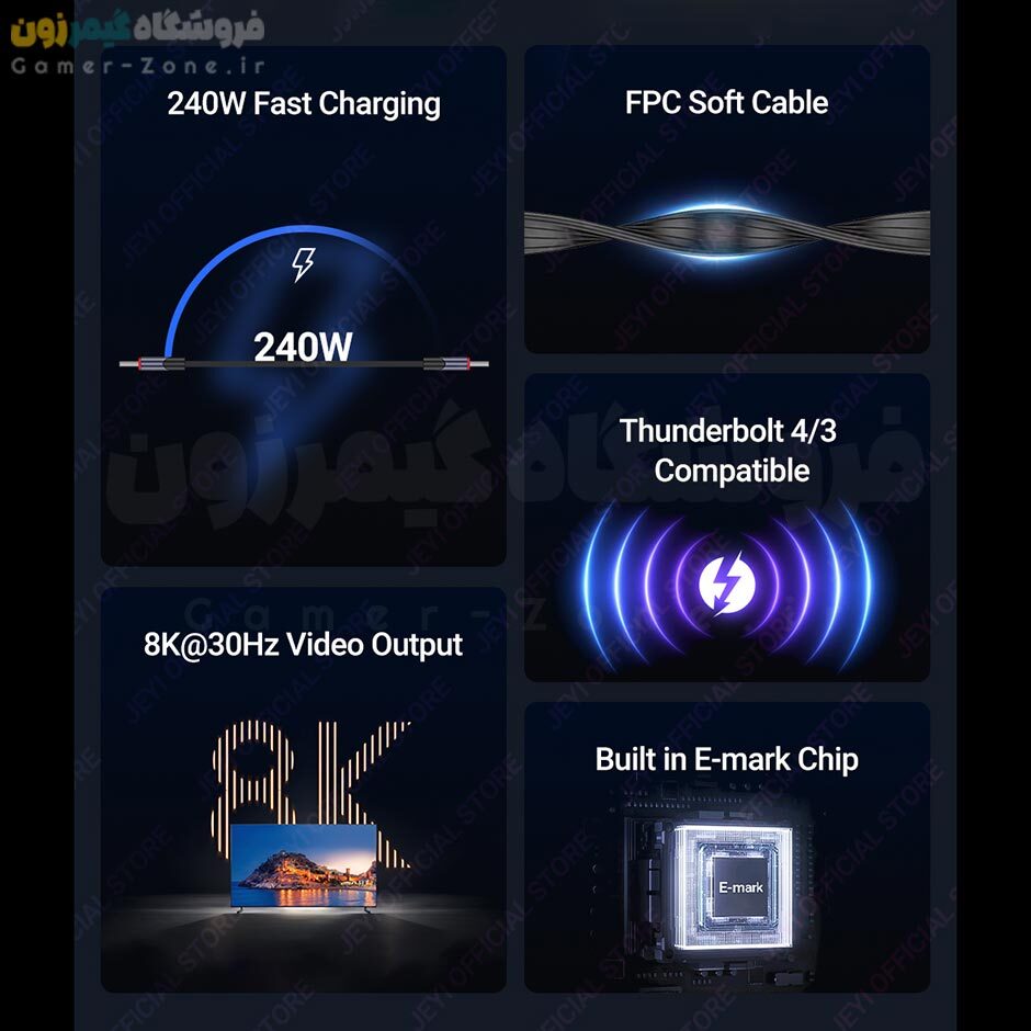 کابل USB 4.0 انتقال فوق سریع دیتا و شارژ فوق سریع مدل JEYI F150 Pro USB 4.0 - 40Gbps/PD240W Type-C Ultra-Fast Data/Charging Cable