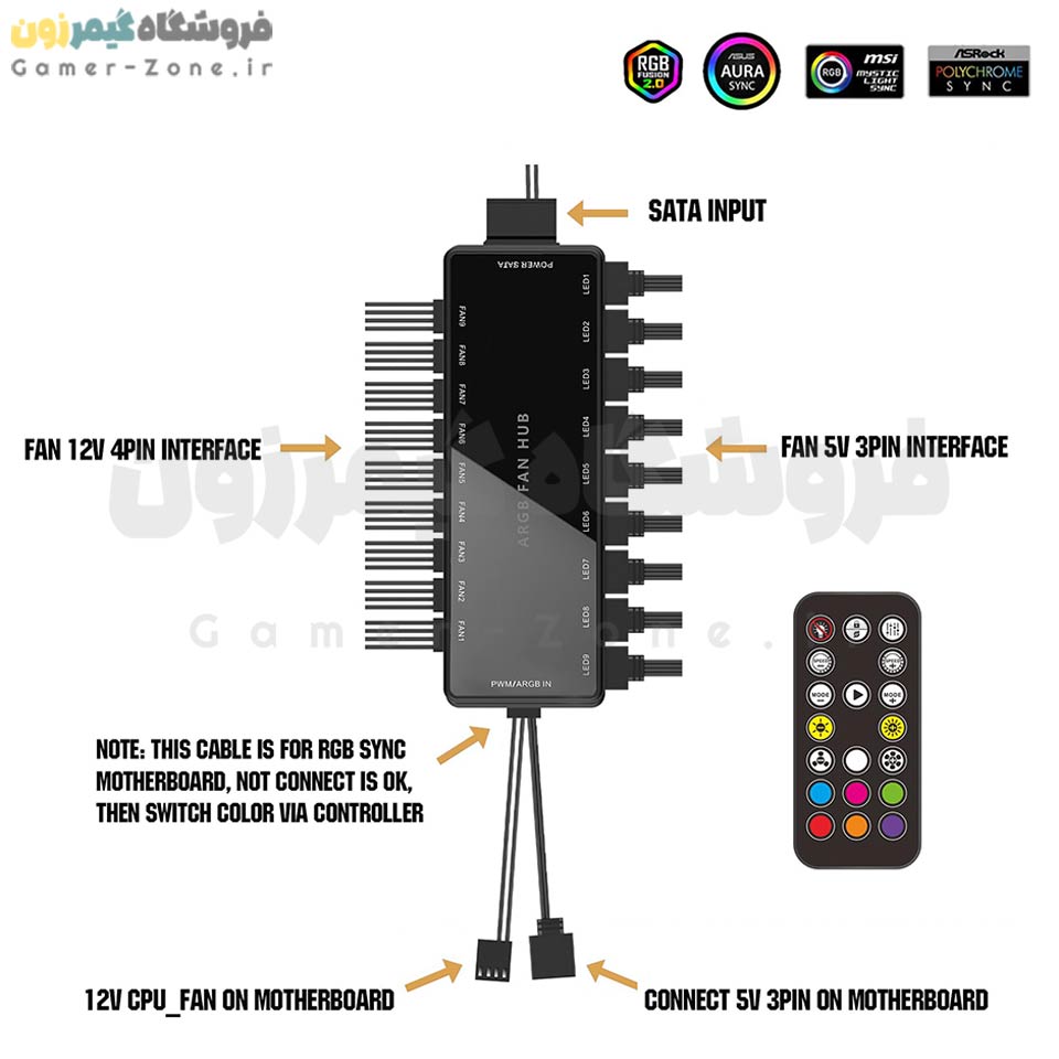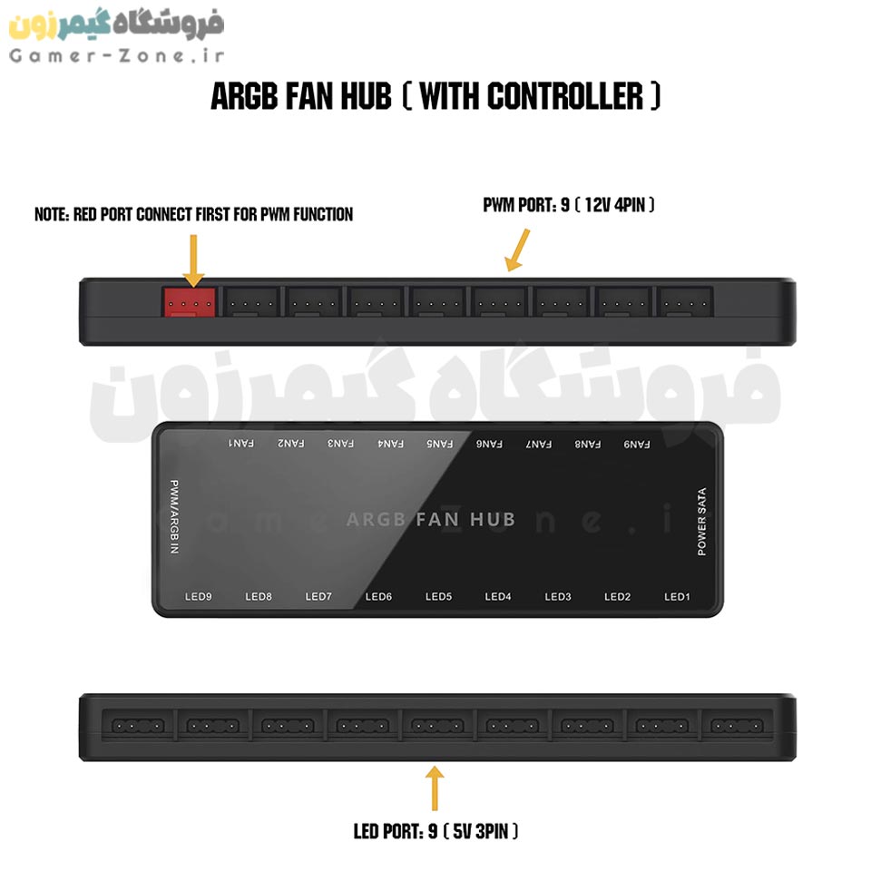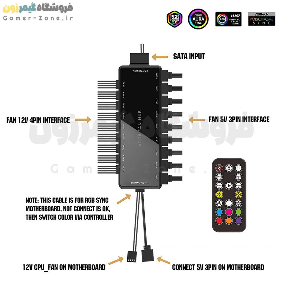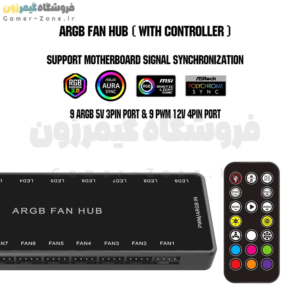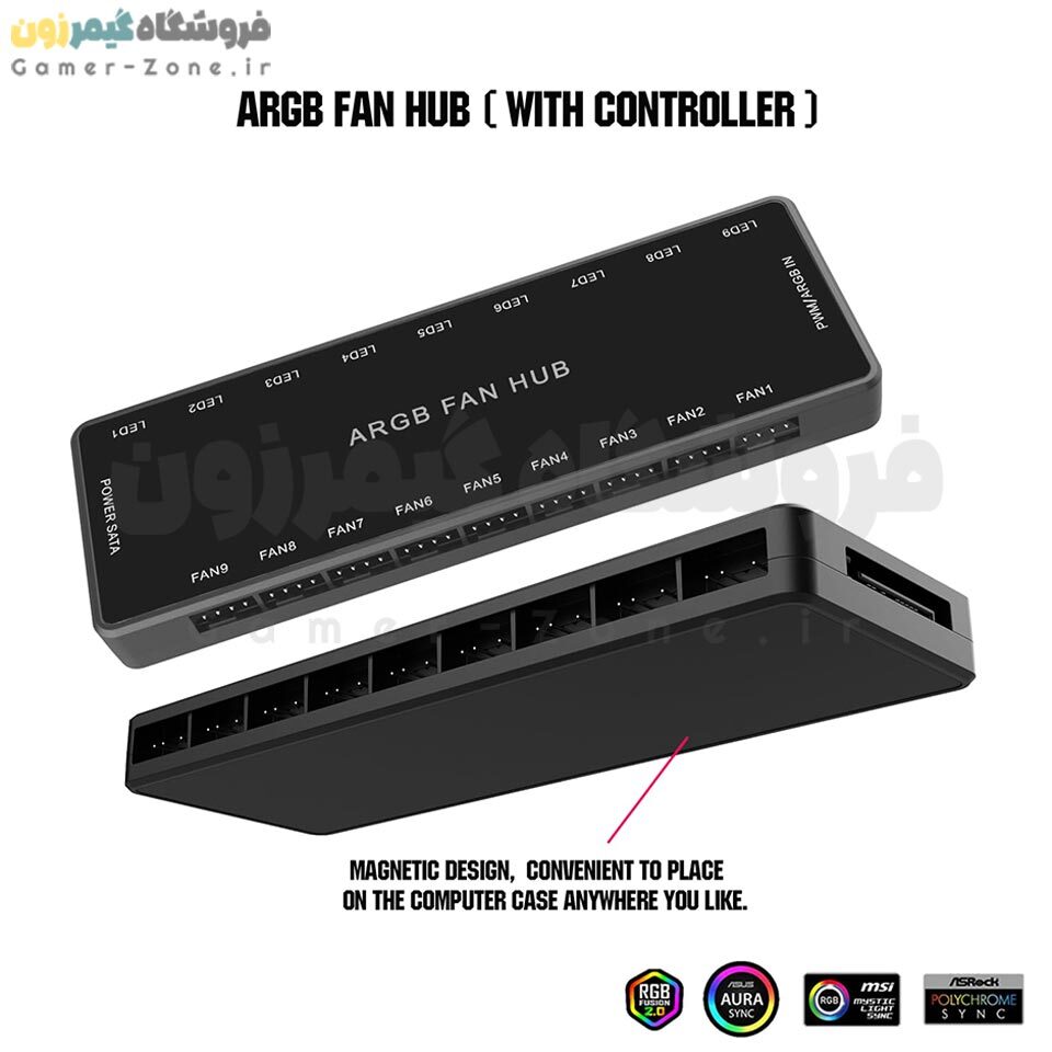 کنترلر 9 پورت ARGB و هاب فن کیس مدل Jungle Leopard LF-99 - 5V 3Pin ARGB Controller and 4Pin PWM Fan Hub